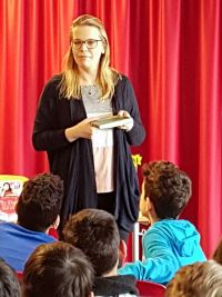 Frau Polak stellte unseren Dritt- und Viertklässlern ihr Buch “Wie ich plötzlich reich wurde und dachte, alles wird cool” vor. Am Ende konnten die Kinder noch Fragen stellen und sich ihre neuen gekauften Bücher signieren lassen.