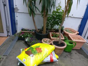 Der Förderverein hat Geld für Pflanzen, Blumentöpfe, Kräuter und Gartengeräte vom Bezirksamt Charlottenburg erhalten. Damit wurden die Atrien, zusammen mit den Kindern, verschönert. Es hat allen viel Freude bereitet.