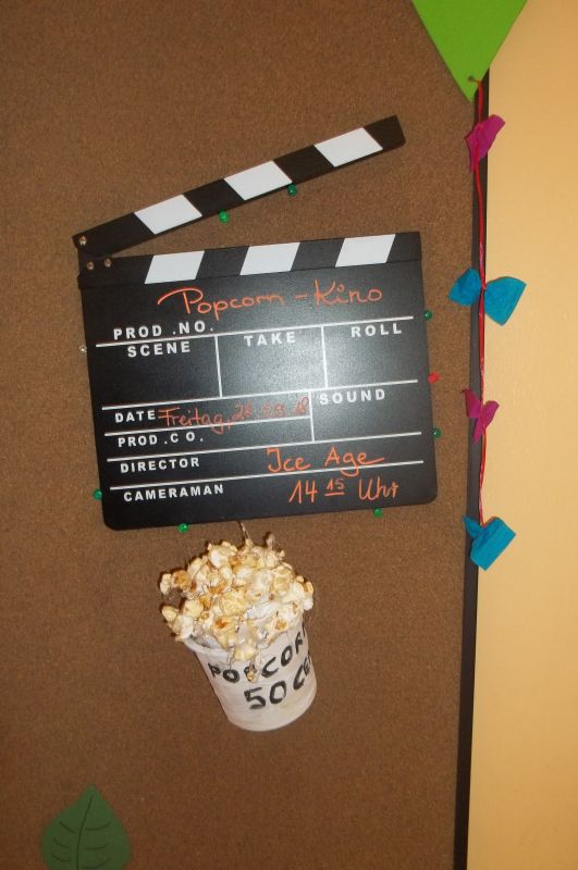 Popcorn-Kino Jeden letzten Freitag im Monat findet unser Popcorn-Kino statt. Wir zeigen einen kindgerechten Film und die Kinder können vor und während der Vorstellung unser selbst gemachtes Popcorn erwerben. Die ErzieherInnen werden dabei tatkräftig durch die älteren Kinder unterstützt.
