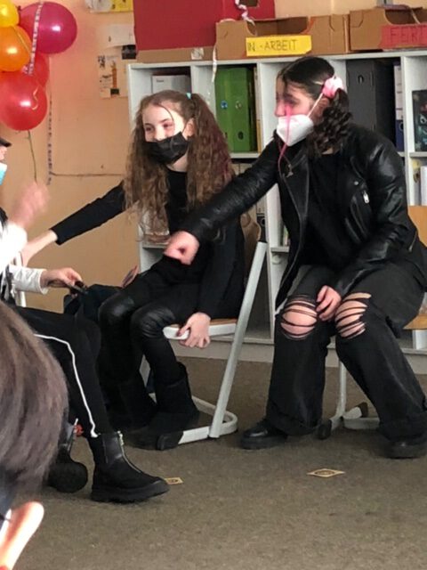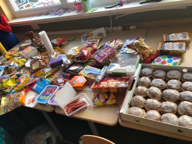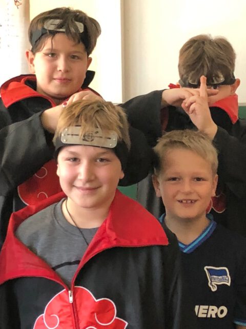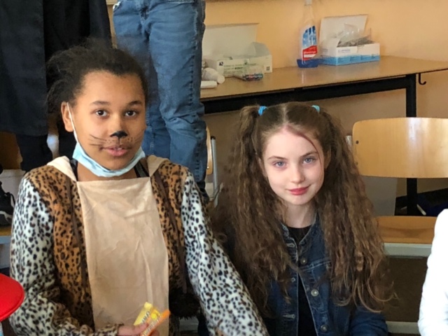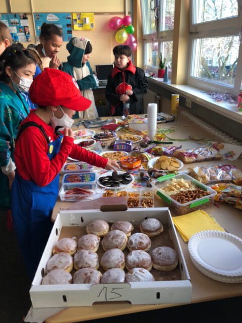 Der Ablauf in unserer Klasse 4a: Als erstes haben wir unsere Kostüme vorgestellt und auch begründet warum wir sie ausgewählt haben. Danach hieß es: Ran ans Buffet ( yeah ). Das hat dann erstmal bis zur Pause gedauert. Nach der Pause haben wir gesund gefrühstückt, bevor wir uns wieder über das Süßigkeiten-Buffet hergemacht haben. Danach haben wir mit der 4b einen Luftballon- Staffellauf gemacht und anschließend Werwolf mit Herrn Nusbaum gespielt, der unser Mathelehrer ist. Stopptanz fehlte natürlich nicht und auch Stille Post haben wir gespielt. Anschließend mussten wir aufräumen.