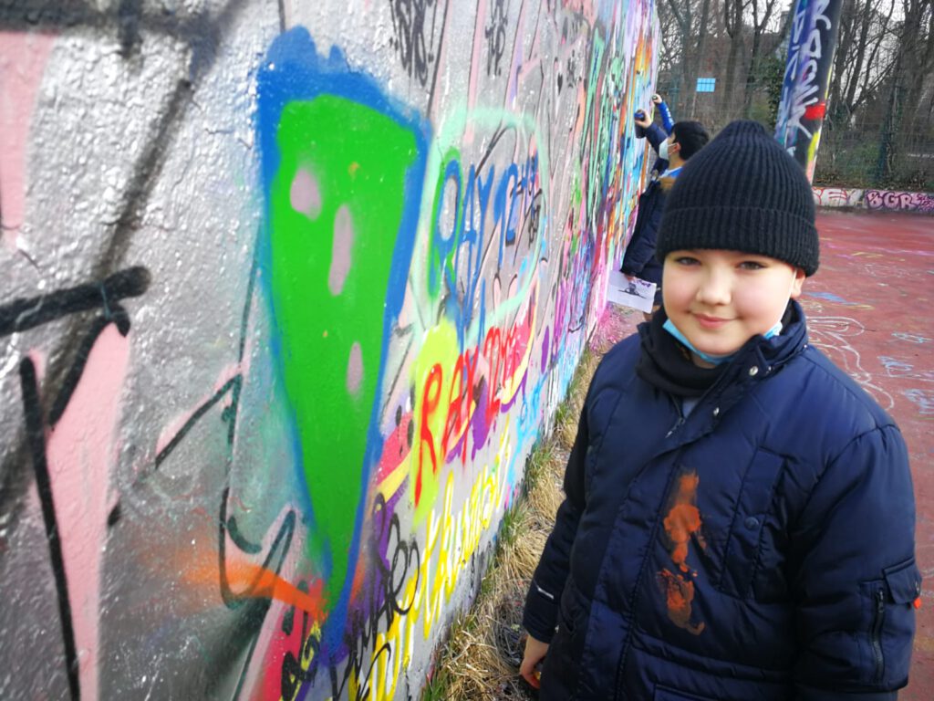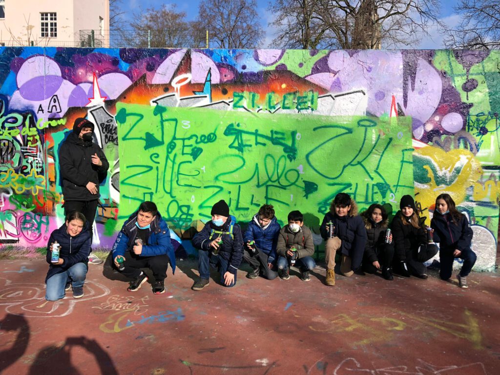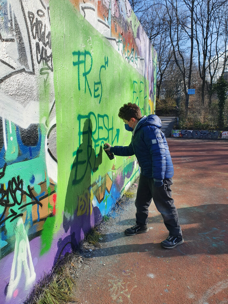 “Ich war in dem Workshop „Graffiti“. Der Leiter der Gruppe war sehr nett und es hat viel Spaß gemacht. Wir haben an legale Wände coole Sachen gesprayt und an eine Leinwand, die am Ende sehr kreativ und schön aussahen. Ein Lob an die Zille! Wir haben es bisher zweimal gemacht und es war soooo cool. Man kann das nur empfehlen.”