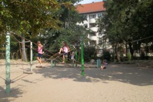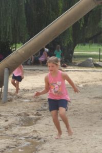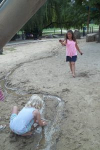 Während der großen Sommerhitze sind wir mit den Kindern in den Preußenpark gegangen. Während des frühen Vormittags konnte noch geklettert und Fußball gespielt werden. Mit zunehmendem Sonnenschein, hat sich das Spielen an die Wasserbaustelle verlegt. Mit dem kühlen Nass ließ sich der Tag genießen.