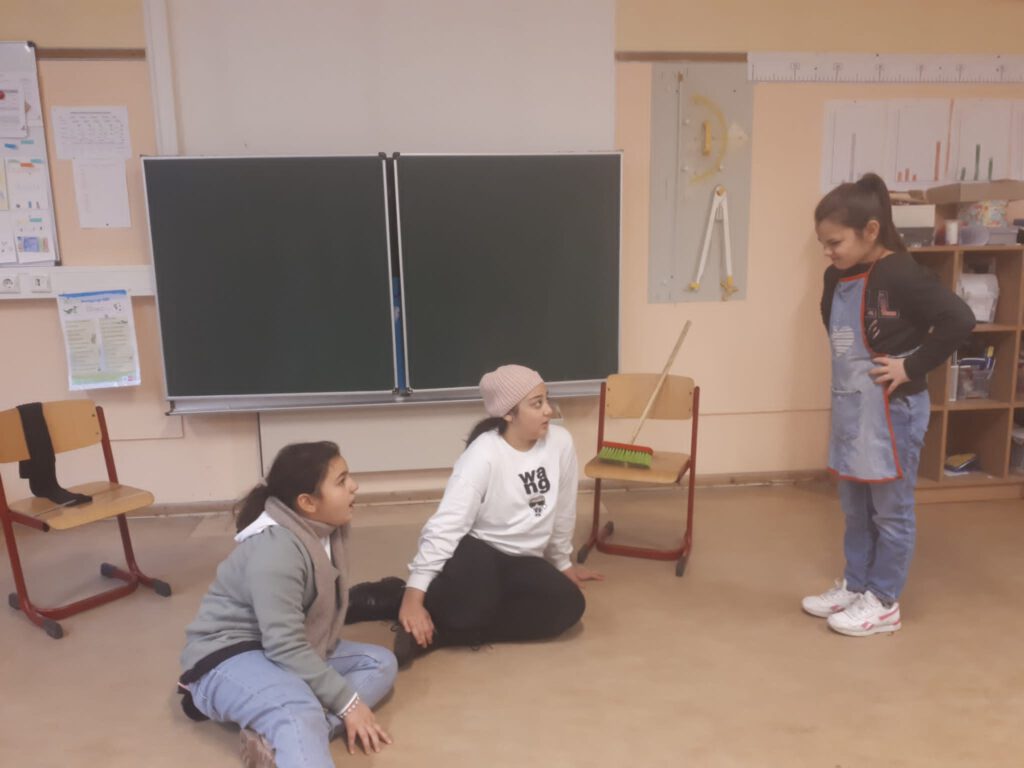 Im Klassenraum haben wir uns zwei Wochen lang auf unseren Ausflug vorbereitet. Zu Beginn der Unterrichtseinheit ging es um Märchen und es fand eine Märchenvorlesestunde „Hänsel und Gretel“ nach den Gebrüdern Grimm statt. Zum Einstieg in die Oper wurden dann die Figuren der Oper musikalisch vorgestellt. Die Kinder suchten sich daraufhin eine Figur aus. So konnte sich jedes Kind in seine gewählte Rolle (Hänsel, Gretel, Mutter oder Vater) hineinversetzen, um dessen Gedanken und Gefühle nachzuvollziehen. Schritt für Schritt lernten die Schüler*innen durch das eigene szenische Spiel, gemeinsames Hören und Singen die Märchenoper kennen und verstehen.